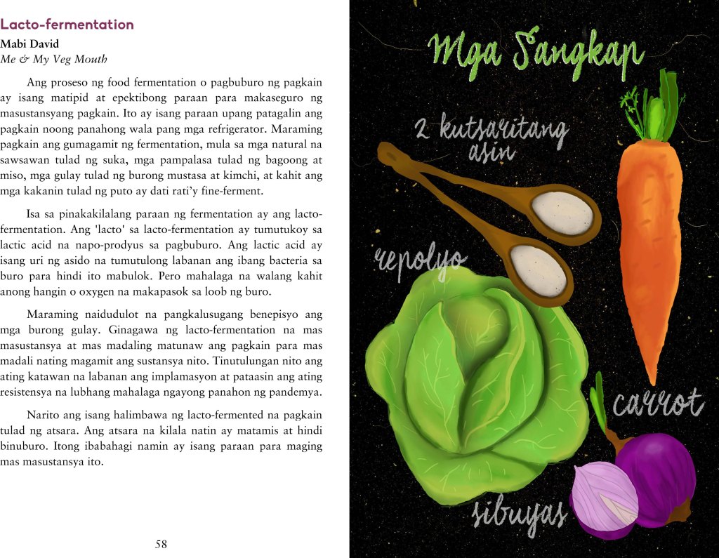 Finally, one of the articles in the e-zine is a reciple for atsara or pickles, made of carrots and cabbage. It takes three days before the vegetables are ready to eat because they have to reach a level of lacto-fermentation. The rural women must have jars of the pickles in their kitchens today because it is what they ate to increase their resistance against sickness during the lockdown.