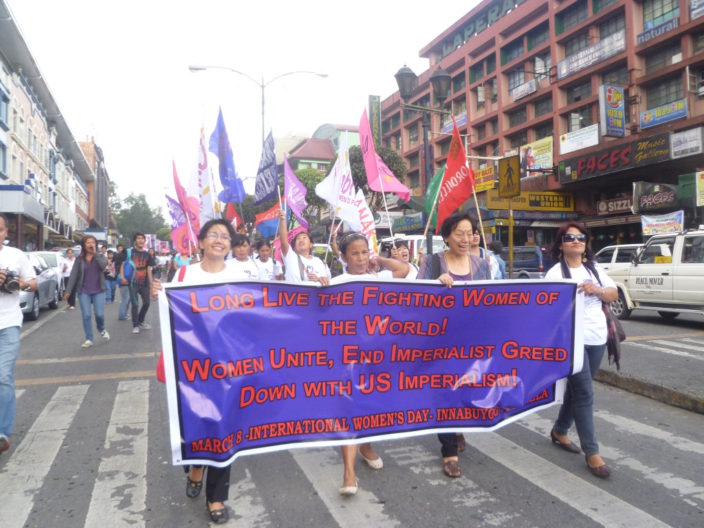 Maria Galong (holding purple placard) joins the March 8 celebration and 21st anniversary of Innabuyog