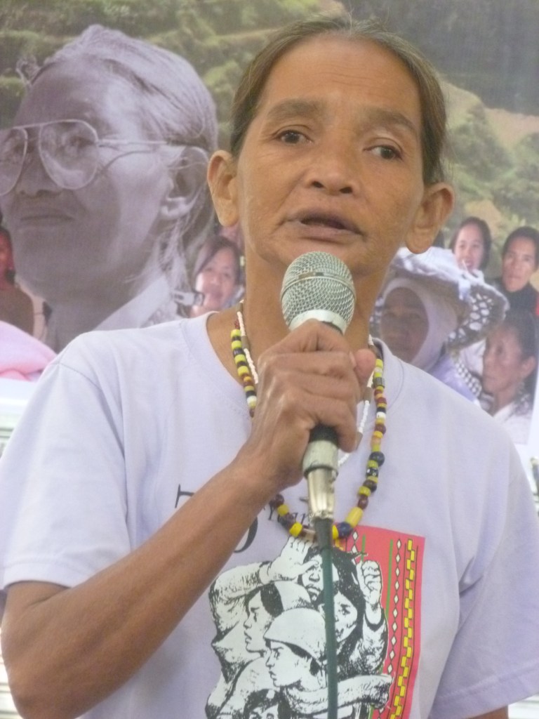 Petra Macliing addressing participants of the 21st anniversary of Innabuyog, the regional alliance of indigenous women’s organizations in the Cordillera