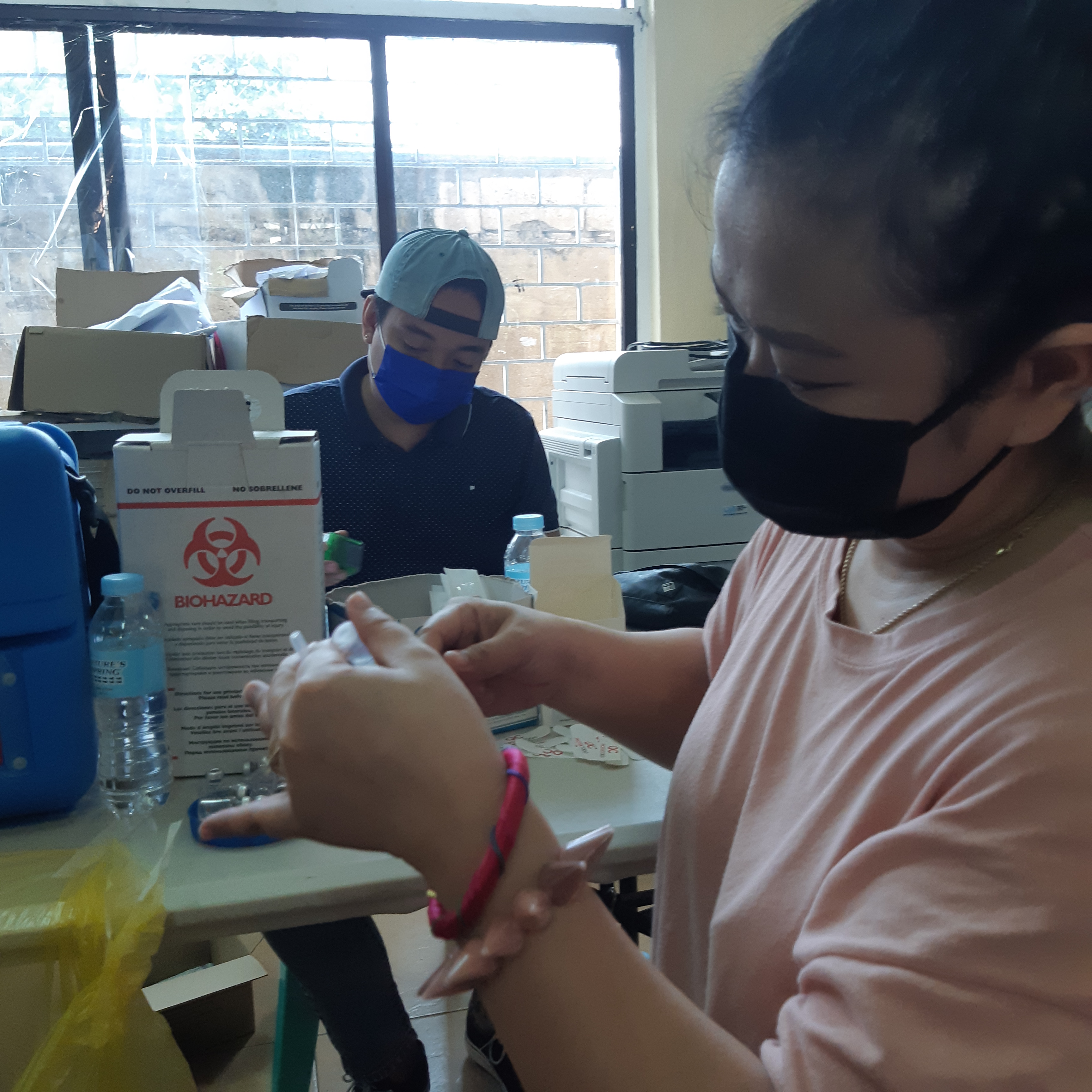 A nursing undergraduate but is licensed in respiratory therapy, Marguerite is not authorized to perform inoculations but she is assigned to record the recipients’ medical history and information, and take their vital signs such as temperature and blood pressure (BP). Males and females equal in number in the daily vaccinations, but she said she noticed that there are more men who are hypertensive than women. The scare of injections contributes to the men’s high BP on their vaccination day. “We have to help them calm down and relax,” she said.