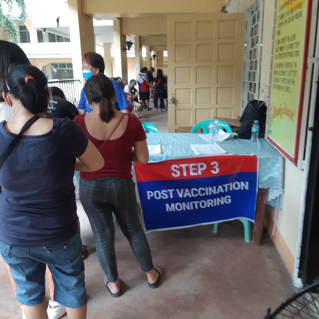 She recalled a few times about being asked by a nurse to stay with a male recipient in the observation area. “May lalaki kasing namutla pagkatapos maturukan. Sinamahan ko muna; nakipagkuwentuhan para maging komportable. (A man turned pale after the injection so I was asked to stay with him. I talked with him to make him comfortable),” she said. She recalled having done this process to a handful of other male vaccinees.